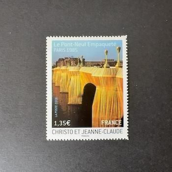 クリストとジャンヌ=クロード (Christo & Jeanne-Claude) は、環境アート作品を作成していた芸術家夫婦です。切手の作品は1985年「包まれたポン・ヌフ」です。