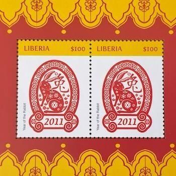 リベリアの切手・2011年・年賀・卯年(うさぎ)小型シート