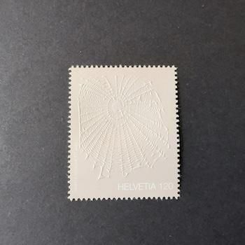 ティチーノ州出身のアーティスト、マルタ・マルグネッティ(Marta Margnetti )は、再生紙と蜘蛛の巣の組み合わせの切手で、生態系の持続可能性というテーマを表現しました。