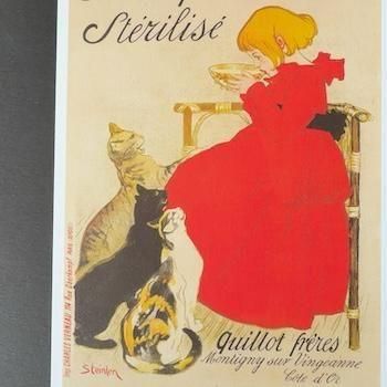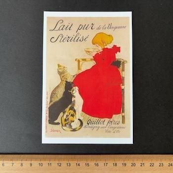 西洋では数少ない「猫の画家」と呼ばれたテオフィル・アレクサンドル・スタンラン(Theophile Alexandre Steinle 1859 – 1923)のリトグラフ《ヴァンジャンヌの牛乳》のポストカードです。