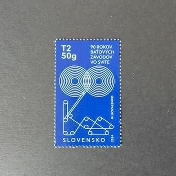 切手のデザインは煙突のある工場のシルエットとタトラ山脈のパノラマが90という数字に織り込まれています。初めて多色シルクスクリーン印刷技術を用いて印刷されました。
