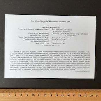 スロバキアの切手・2003年・ブラティスラヴァ世界絵本原画展・FDC