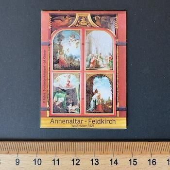 フォアアールベルク州で最も貴重な美術品の1つ、フェルトキルヒ大聖堂の聖アンナ祭壇画を称える切手です。祭壇画のように扉が開くデザインです。